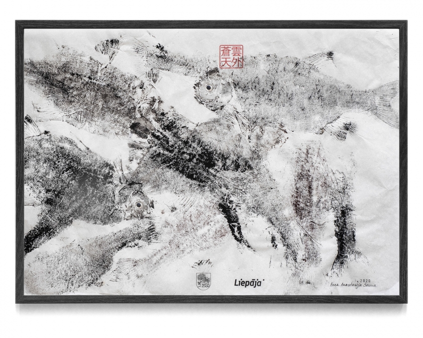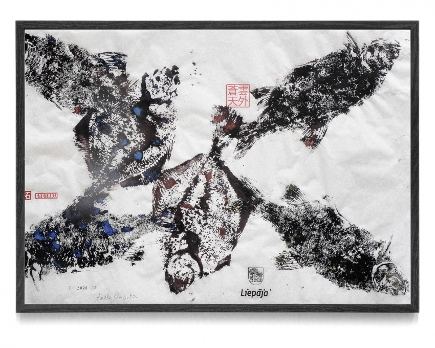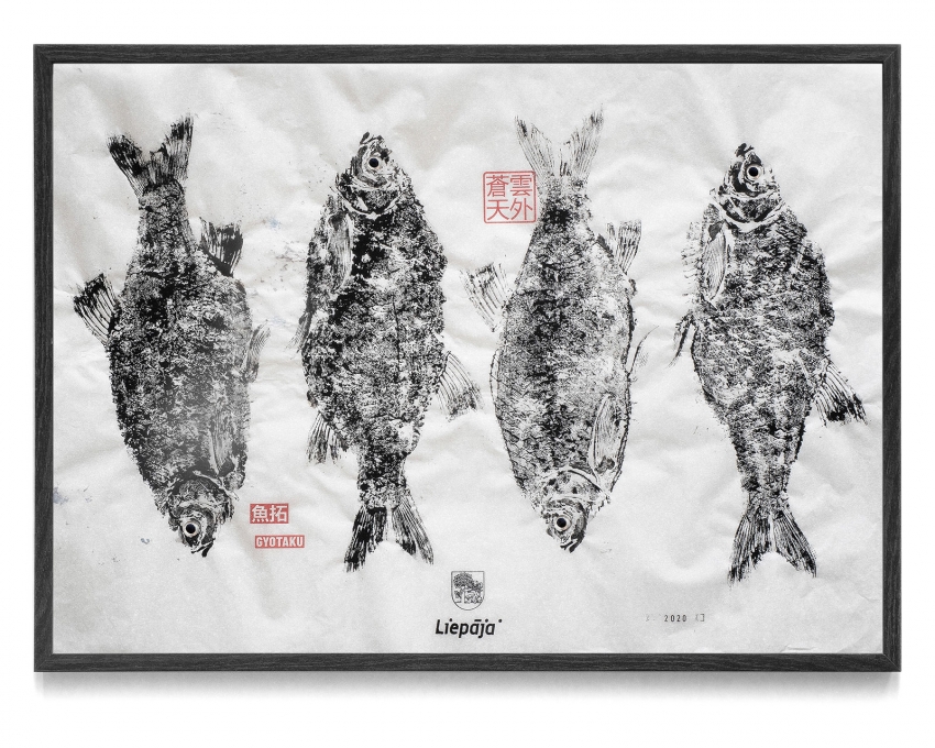 LiepU studentu radītie darbi "Gyotaku" grafikas tehnikā