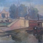 Galerijas "Romas dārzs" izstādē "Kolekcija" skatāms mākslinieka Jāņa Rūdolfa Zuntaka (1906 – 1985) darbs – eļļas tehnikā gleznota "Ainava ar skursteņiem".