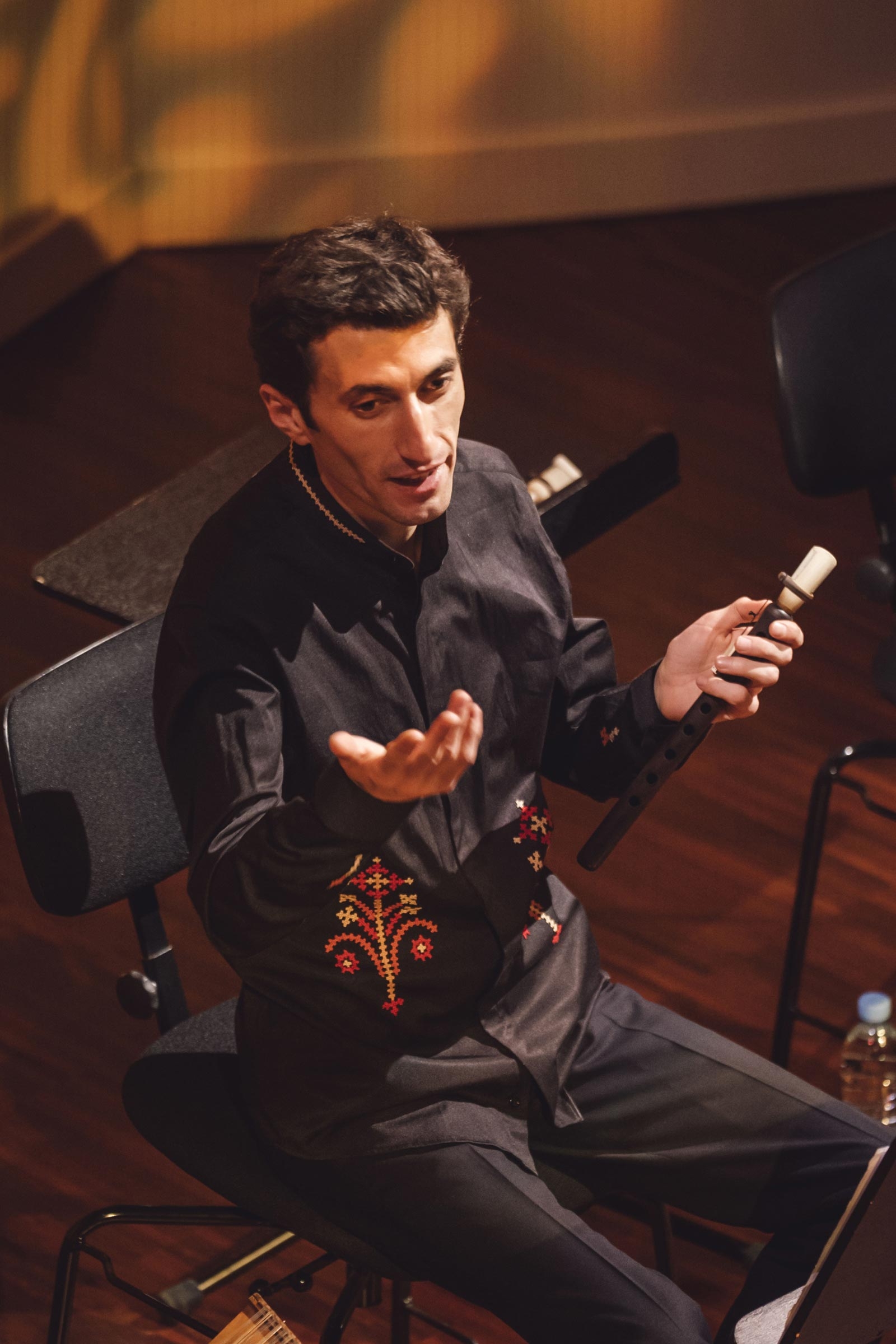 Stāstot par savu instrumentu, Arsens atklāja, ka armēņu duduks veidots no bambusa un niedres un viens pats spēj radīt skaņu vienai oktāvai. Šī iemesla dēļ koncerta laikā mūziķis izmantoja trīs dudukus, lai spētu pielāgoties katra skaņdarba tonalitātei un pārējo instrumentu skanējumam. Mūziķis arī pastāstīja, ka šo instrumentu spēlē izmantojot cirkulāro elpošanu, kurā vaigos uzkrāj gaisu līdzīgi kā dūdām, taču paralēli pūšanai ievelk gaisu caur degunu, lai noturētu ilgas skaņu līnijas.